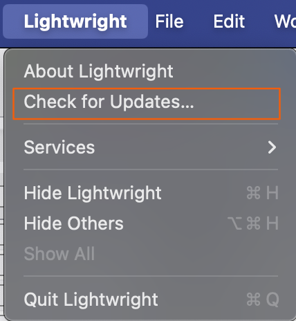 You can check for updates under the Lightwright pulldown.