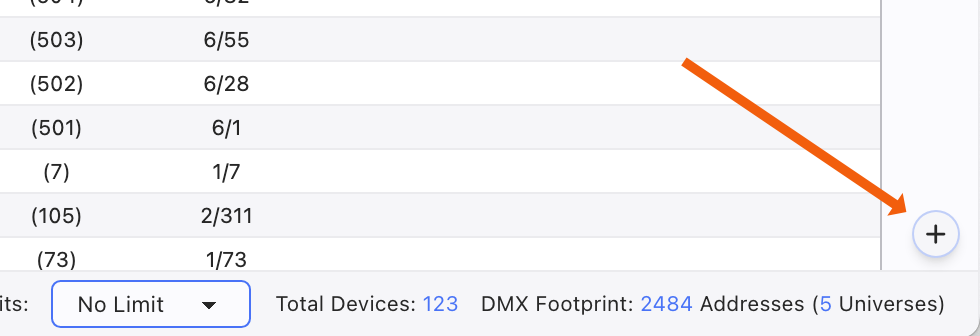 - For adding several fixtures, you can click in an empty area of the worksheet, right-click and choose Add Device, press CMD/Ctrl + i or touch the +Add side panel.