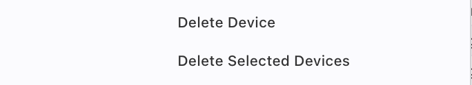 To Delete, you have a couple of options. You can point and right click and select Delete Device or you can select an item (or items) using the Selection Box on the left of each device, then Right Click and choose Delete Selected Devices.
