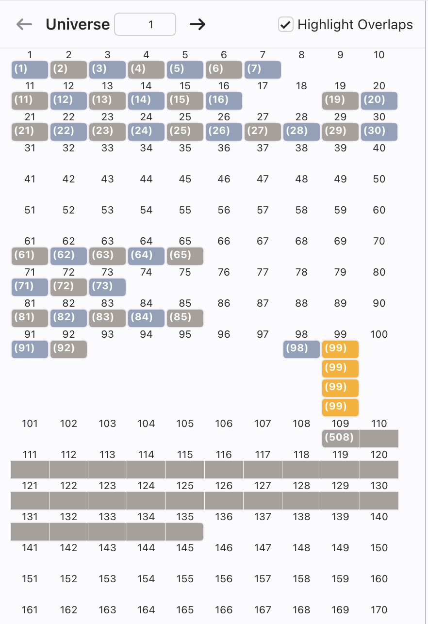 You can toggle Highlight Overlaps to have Lightwright point out potential patch conflicts.
