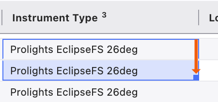 To copy any piece of data, you can obviously use copy and paste functions. But Lightwright includes faster ways. When you select any cell, a drag handle appears at the bottom right of the selected cell.
