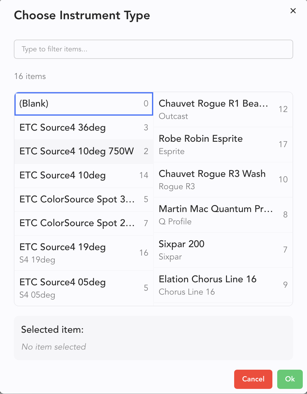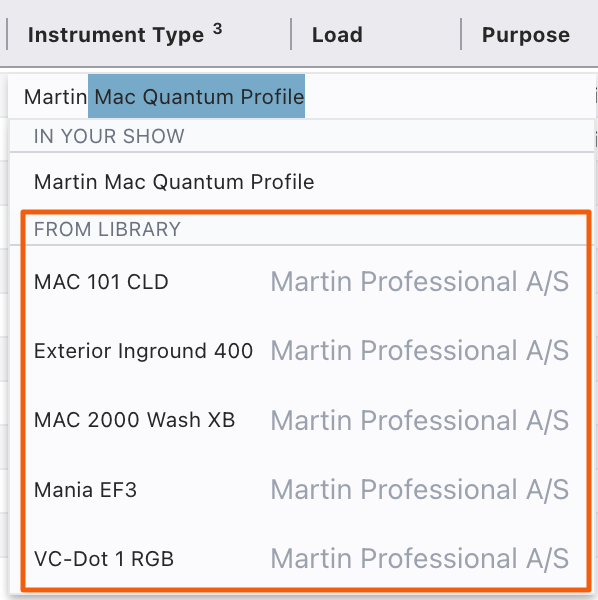 As with items from the show file, the results in the Library are filtered by what you type. Select and press Enter to apply.