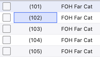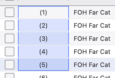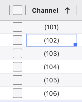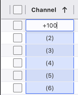 When editing a range of numbers, there is a terribly helpful offset function. If I want to take channels 1 through 5 and change them to 101 through 105, click and drag to select the range.