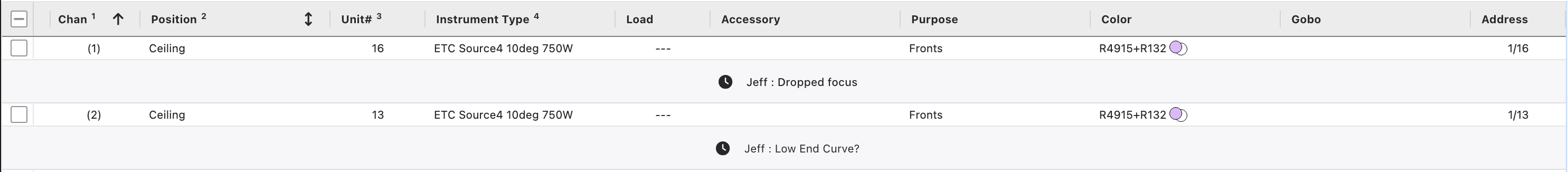 Any Device that has a note will display it below the Device in the Worksheet.