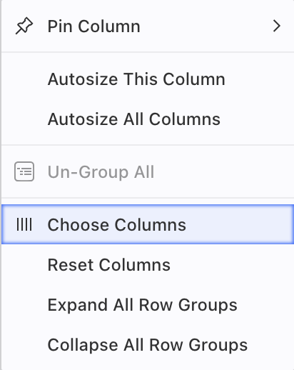 Choose Columns allow you to hide or reveal Columns in this view.