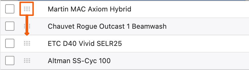 Selective re-ordering (as opposed to alphabetizing) in any Maintenance list is a simple matter of dragging and dropping one or more items at a time by the grid of dots.