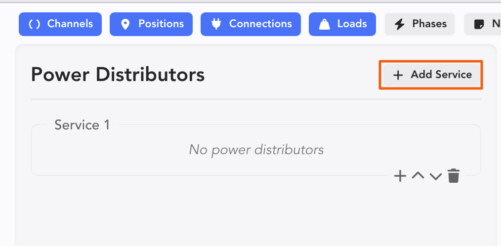 Once you have a Service, you can add a Power Distributor by touching the +. A popup opens.