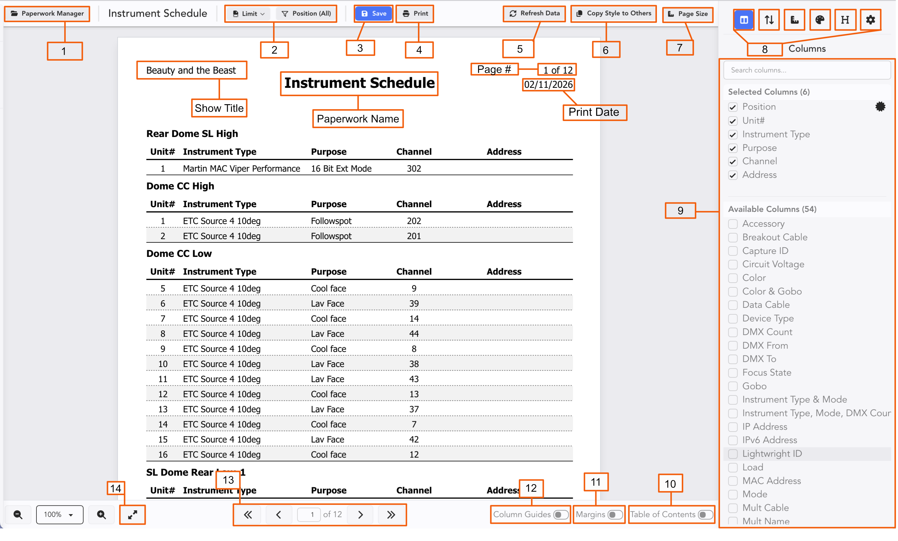 A. Columns- include, exclude and reorder columns from your paperwork.