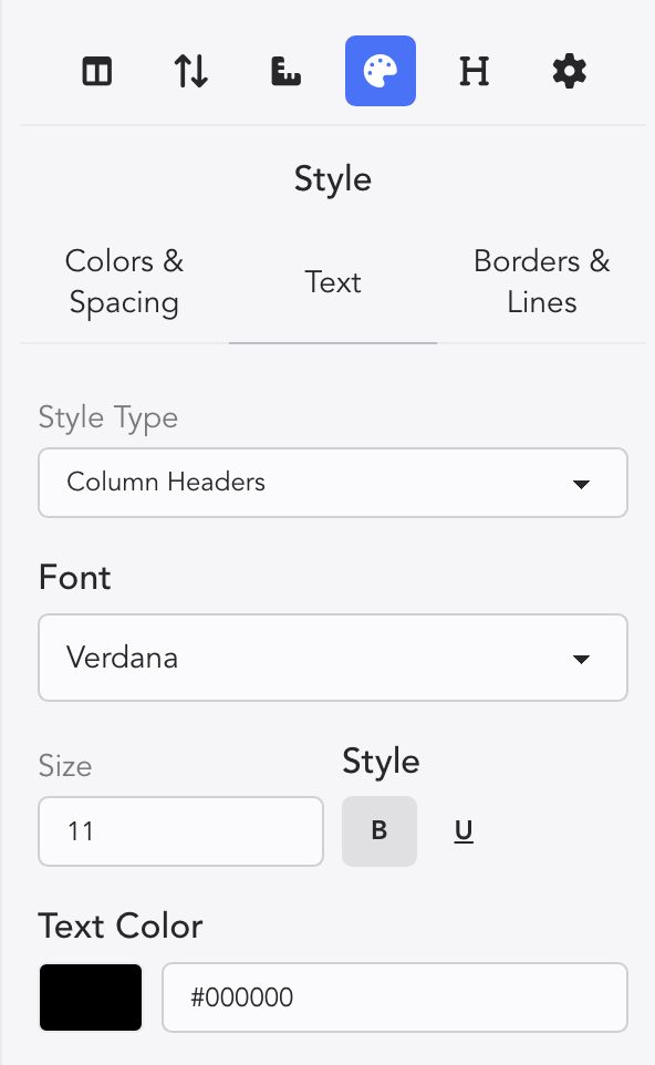 - Column Headers-- which focusses text changes on the Column Headers.