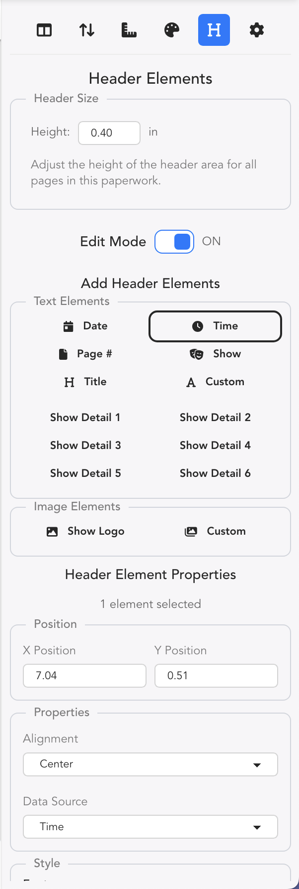By turning Edit mode on, you can alter any heading item. Add or remove any Text Elements that you wish. Two things to point out: