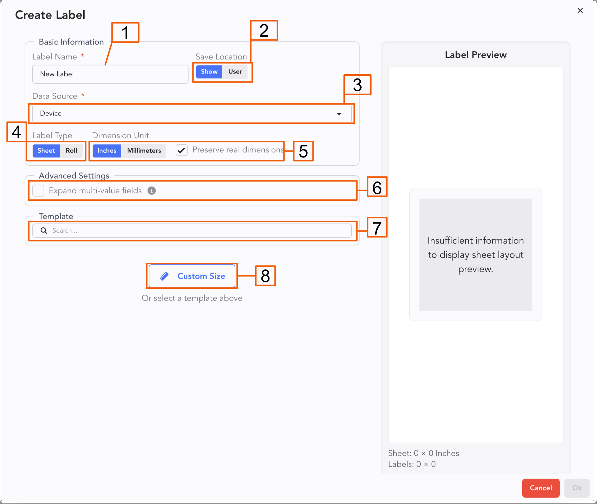 Template-- it is highly recommended for typical labels to use template to choose your label size.