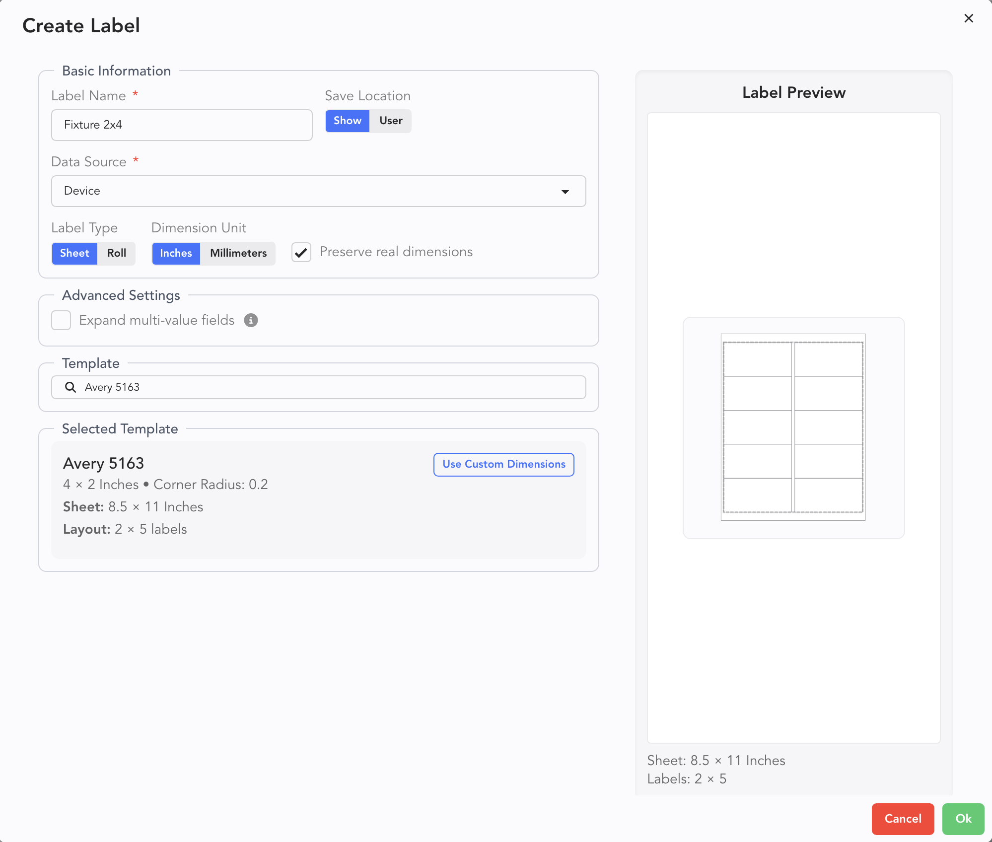 Label Type-- Lightwright now supports roll printers! Of course, it also still supports standard sheet labels.