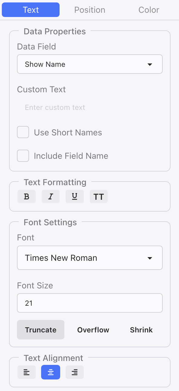 - Custom Text-- if you don't choose a Data Field, Lightwright will default to a Custom Text. This is where you would enter that text.