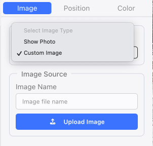 - Select Image Type-this can either be the Show Photo or any other image. Choose from the pull-down which to start with.