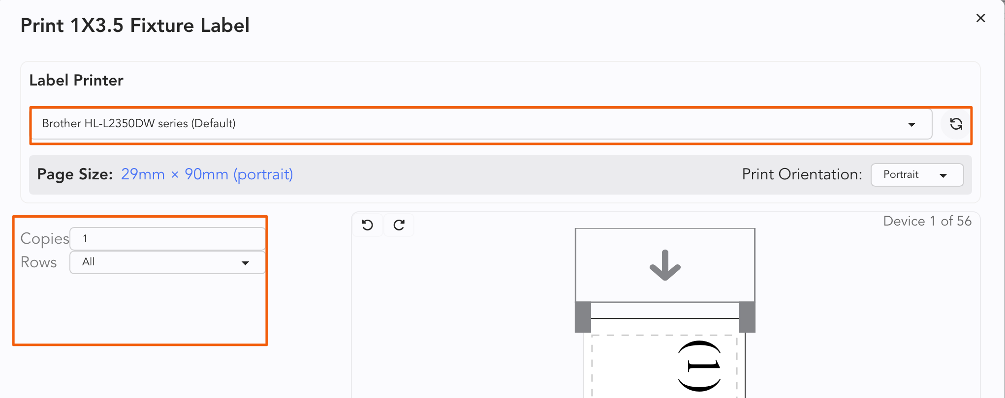 From the top pull-down menu, make sure you have selected the correct printer. This example features a roller printer.