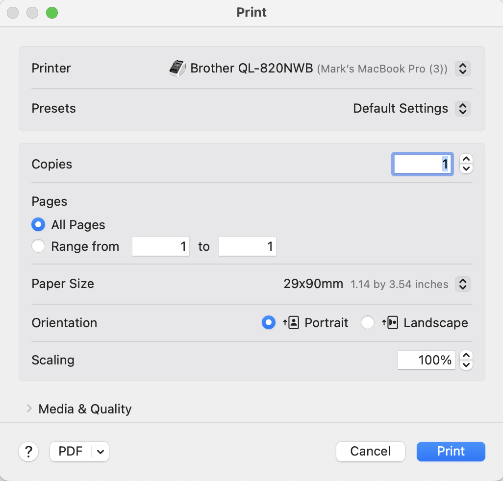 Your computer's print dialogue will pop up here. If you need no changes, press Print.