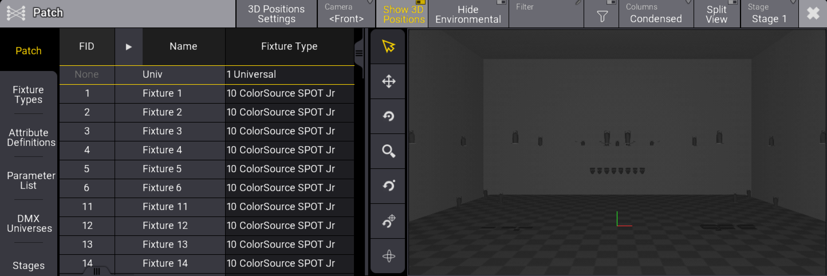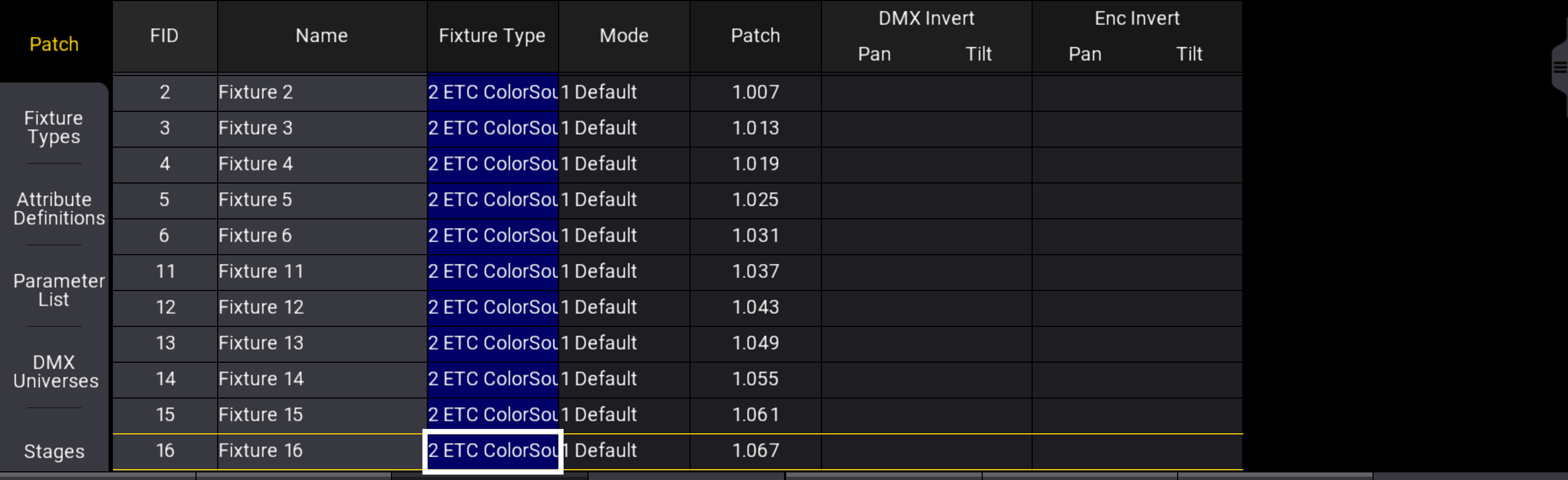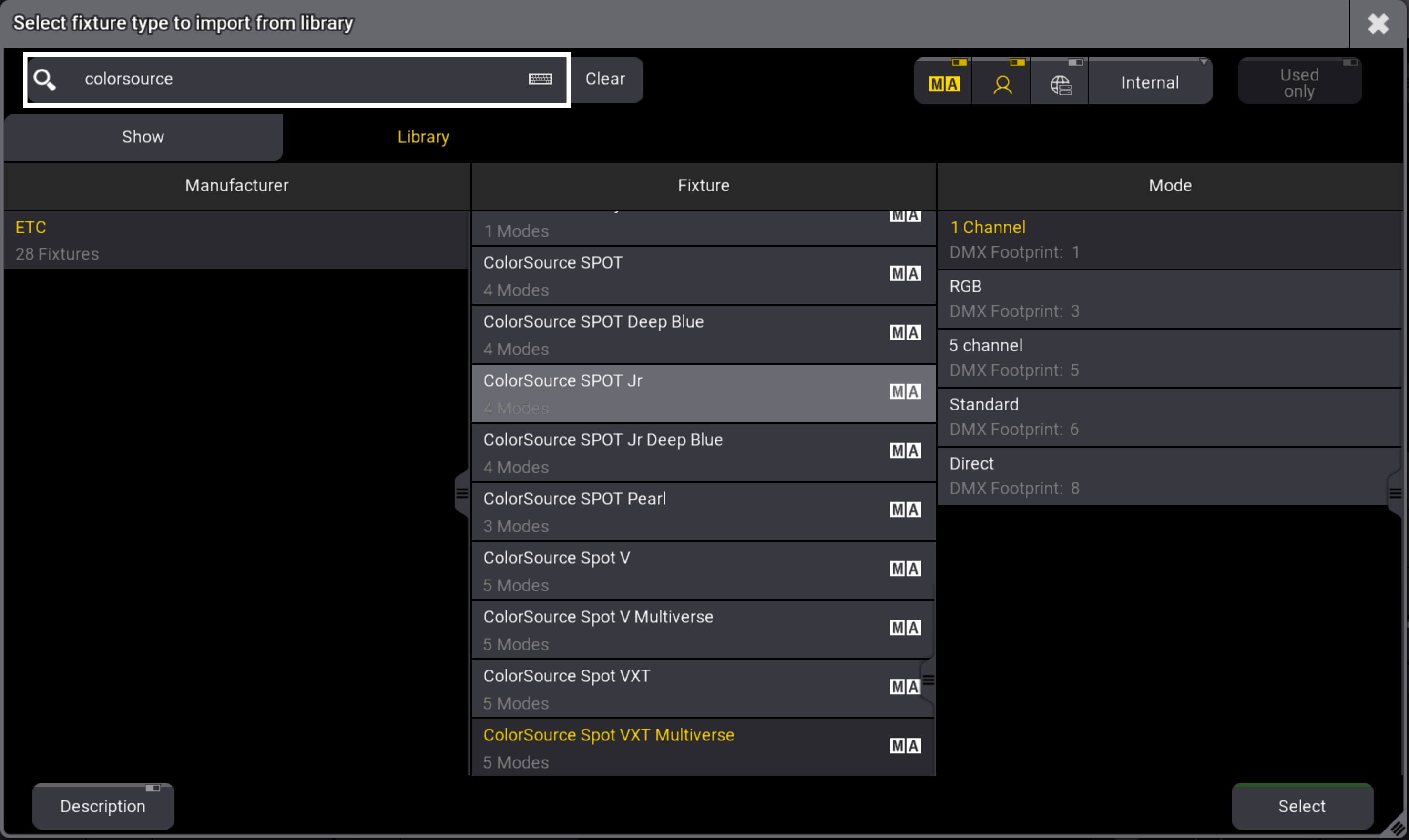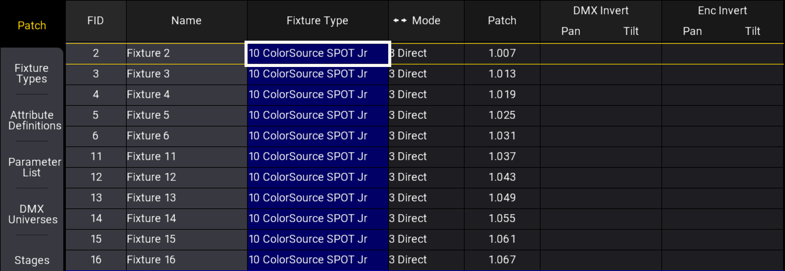 Lasso the column for your fixture type- Colorsource Spot Jr fixtures in this example.