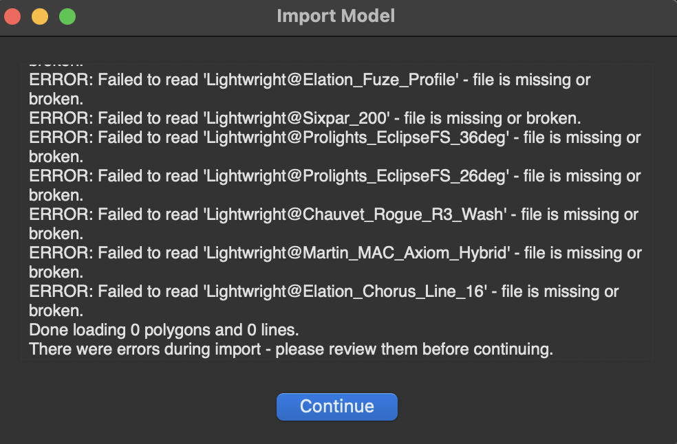 A popup shows what happened. There are errors listed, but in this case, none of them prevent the import from working.