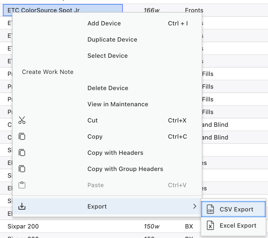 Depending on what columns are visible in your current Worksheet, Lightwright can export all fields to CSV.