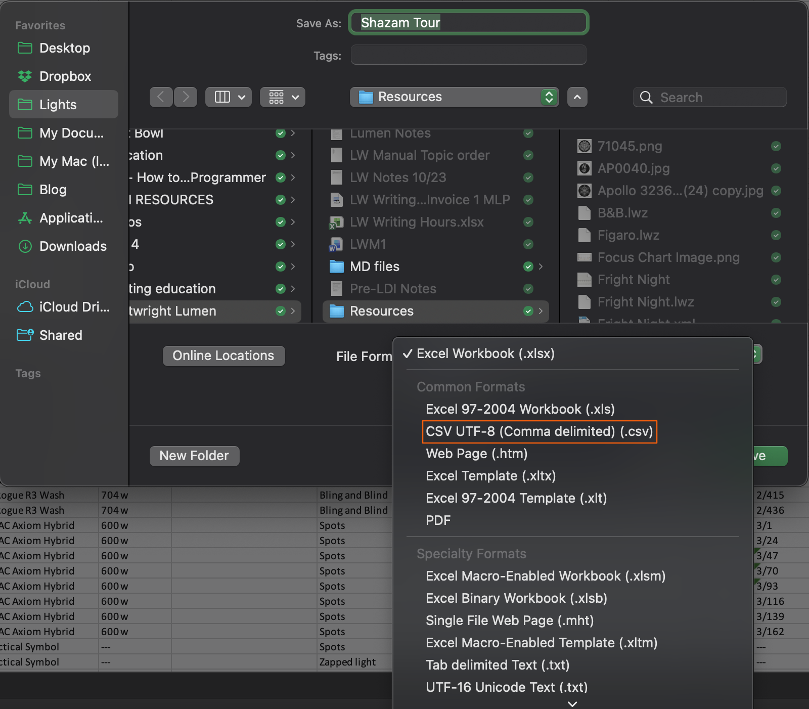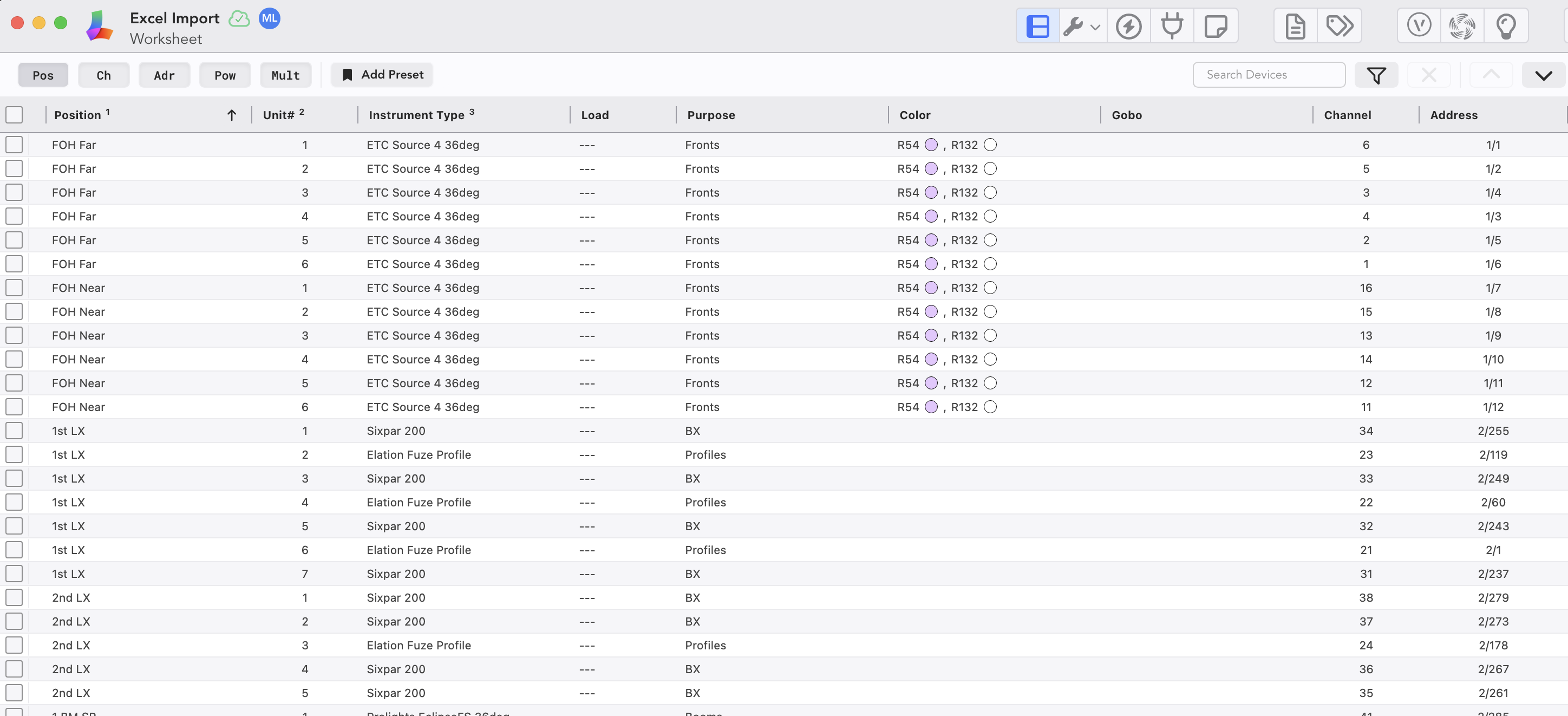 Lightwright supports importing from an Excel file. Let's start in Excel with your file already open.