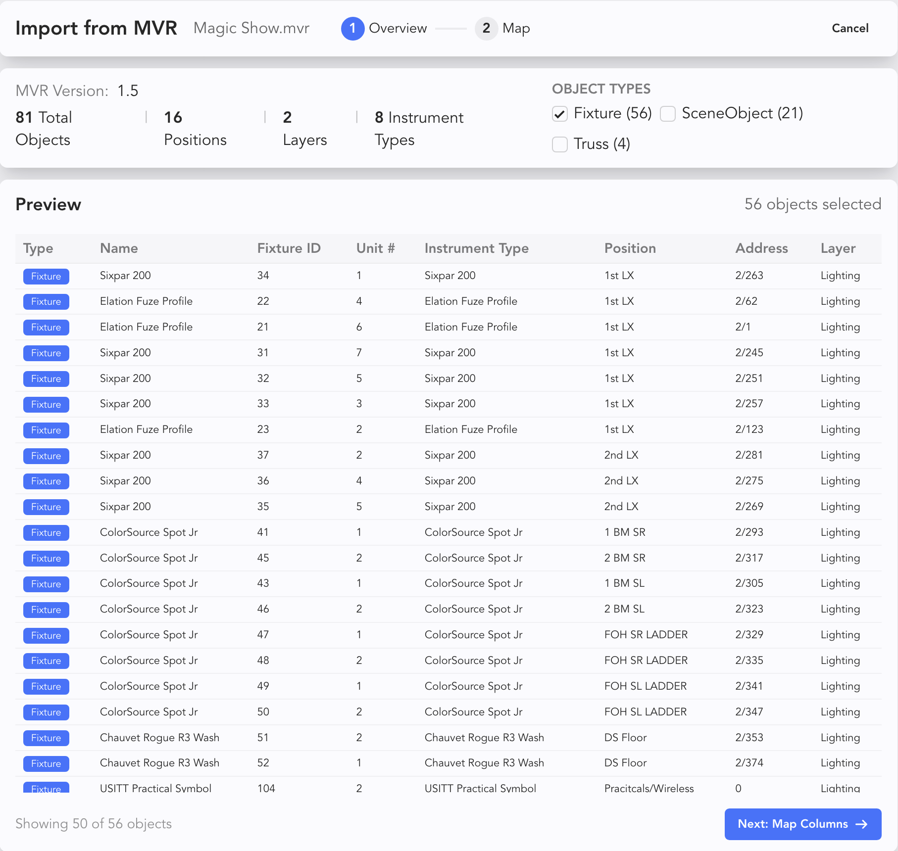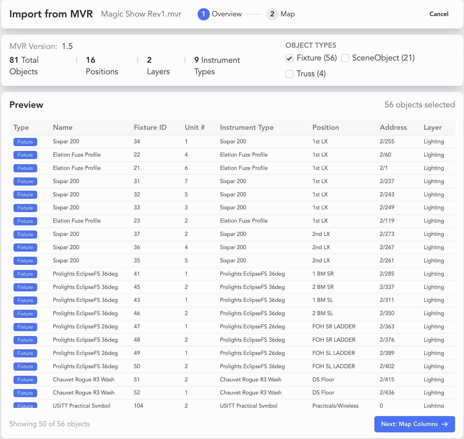 Take a moment here and make sure your incoming data is mapped how you want to the Lightwright fields. Use the pull-down menus to make changes.